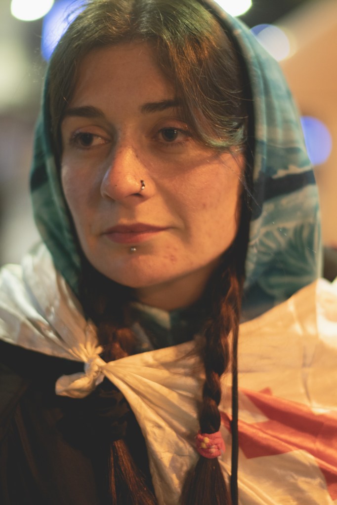 Certains cachent leur visage par peur des représailles, d’autres s’enroulent dans des couvertures pour lutter contre le froid. Brandissant les drapeaux géorgien et européen, ils tiennent bon sur l’avenue Rustaveli, scandant « Sakartvelos gaumarjos » et « Sakartvelos momavali Evropashia », ce qui signifie « Gloire à la Géorgie » et « L’avenir de la Géorgie est en Europe. »